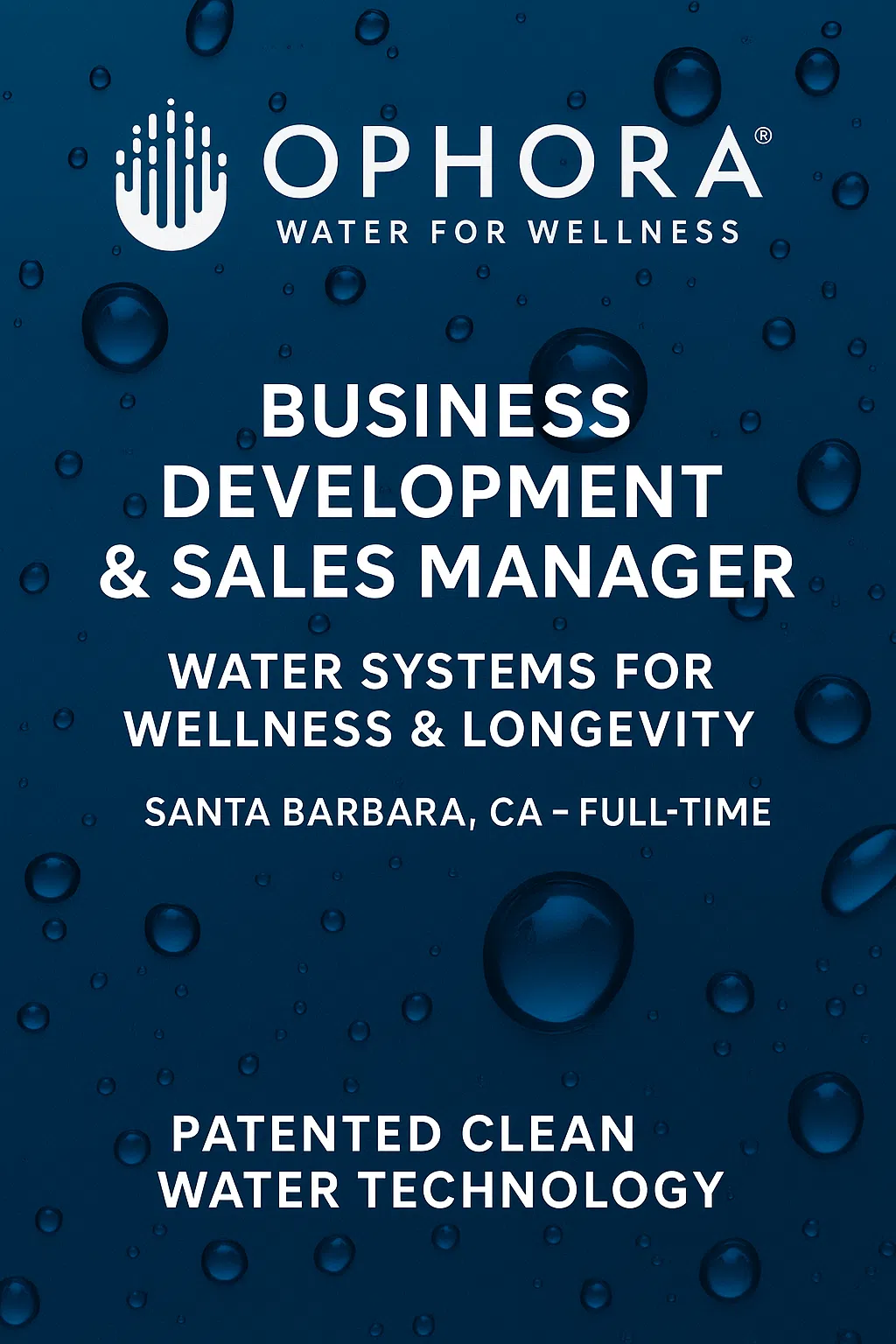 As our Business Development & Sales Manager, you’ll lead sales of OPHORA’s premium water systems to the most discerning clients in health, wellness, and luxury living.